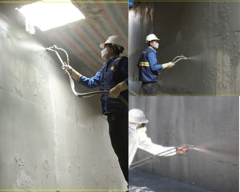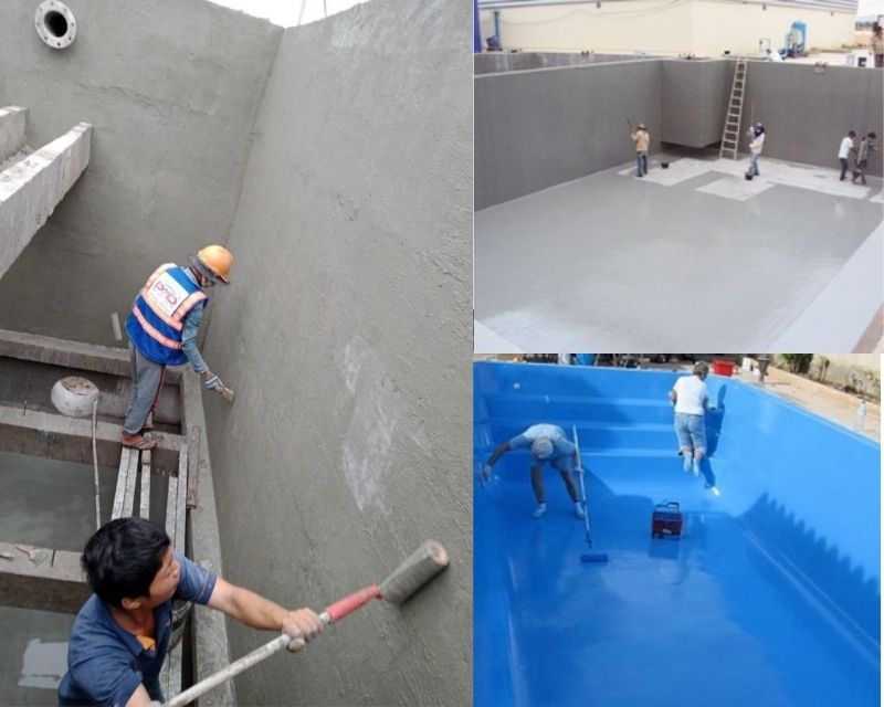 Pha đúng tỷ lệ, thi công đều tay, đảm bảo phủ kín toàn bộ bề mặt trong và ngoài bể. -
