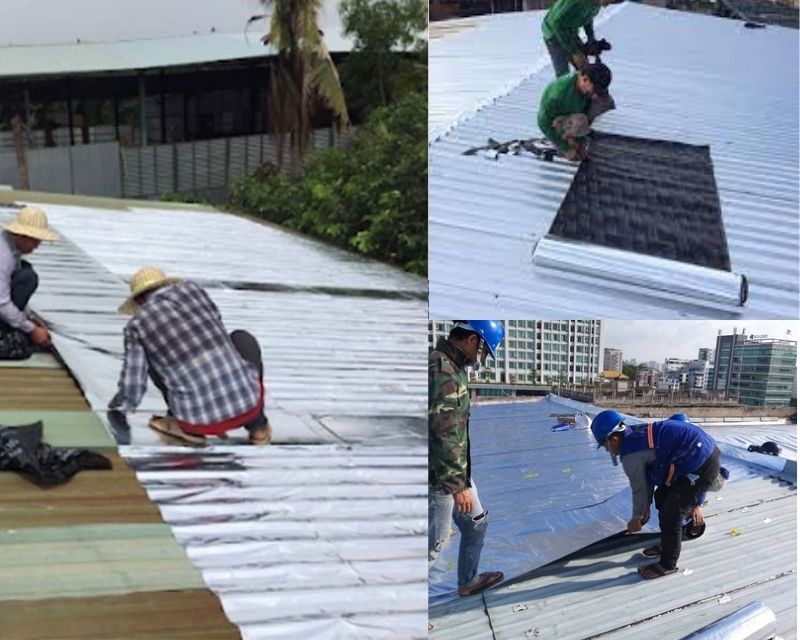 Màng chống thấm khò nóng: Áp dụng cho mái tôn phẳng, khu vực tiếp xúc nước thường xuyên.