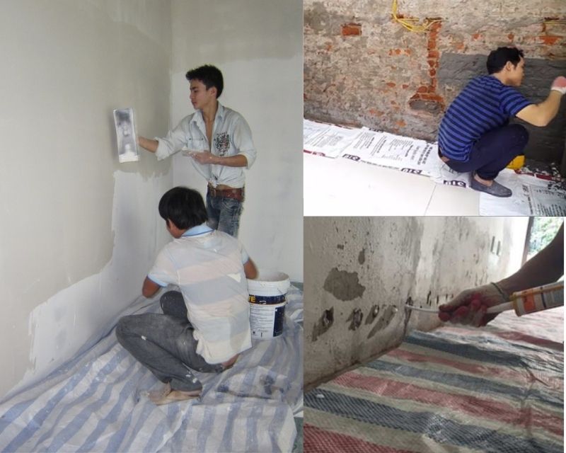 Cạo sạch lớp sơn, vữa, mảng ố.