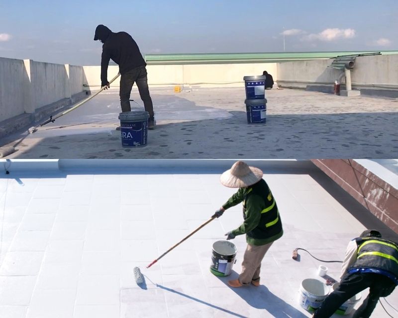 Thi công lớp phủ chống thấm bề mặt sân thượng