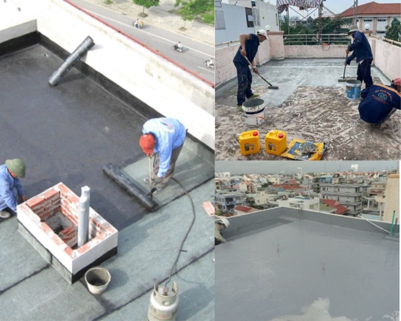→ Sử dụng màng khò nóng, sơn chống thấm gốc xi măng-polymer hoặc gốc PU tùy loại công trình. -