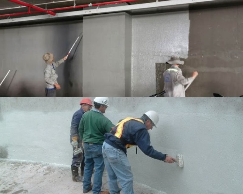 Vữa chống thấm gốc xi măng: Dễ thi công, thấm sâu vào bề mặt bê tông.