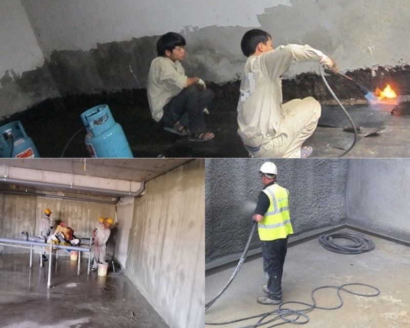 | Chống thấm kiểu màng dán | Màng bitum khò nóng | 400.000 – 650.000 | Phù hợp tầng hầm lớn, chịu áp lực nước, lớp dày và bền chắc |