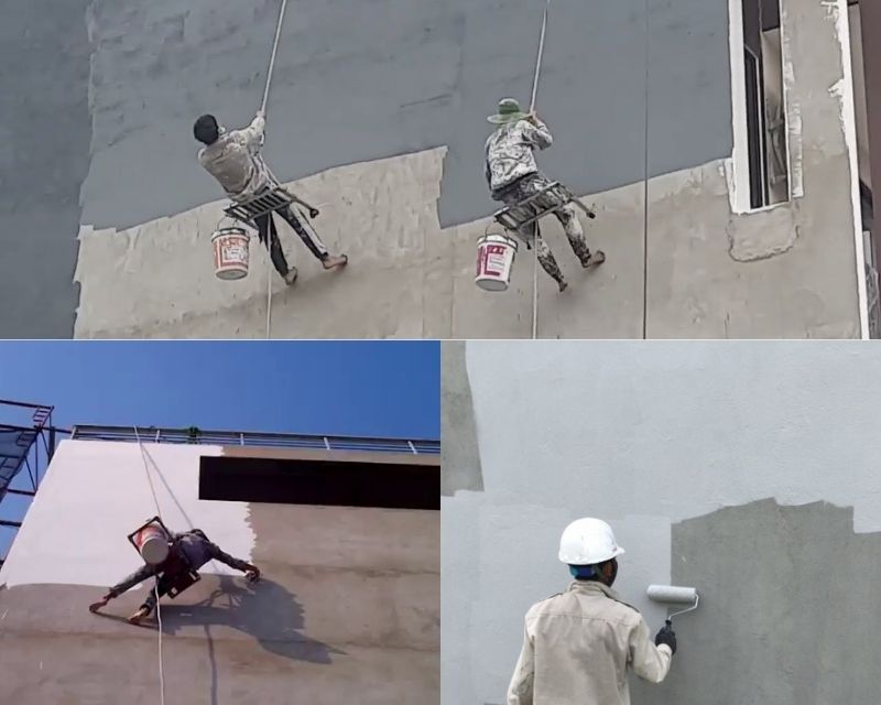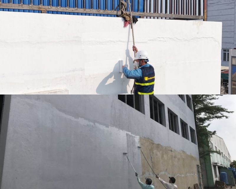 Thi công lớp phủ chống thấm ngoài tường nhà