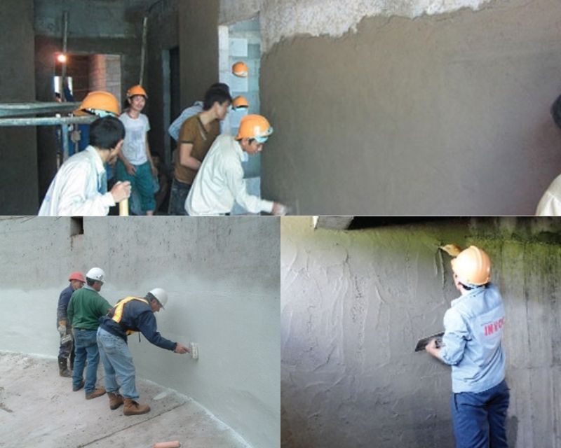 Nhưng nếu mặt ngoài nằm dưới đất, tiếp giáp tường nhà bên cạnh, tầng hầm, bể nước, ta không tiếp cận được để thi công, nên phải xử lý từ mặt trong công trình.