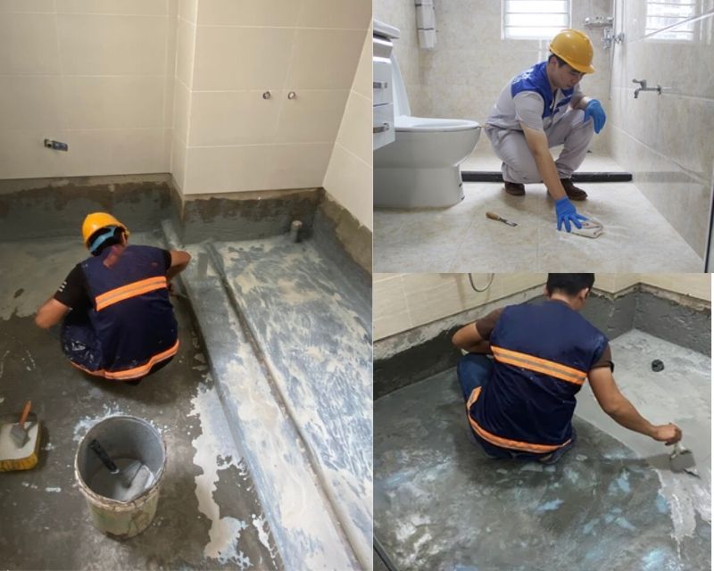 Thi công bột trét chống thấm cho tường nhà vệ sinh