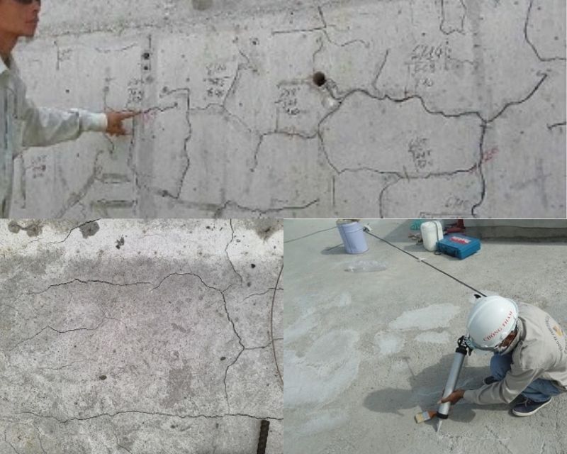 Những vết nứt kết cấu này cần được xử lý bằng vữa chống thấm hoặc keo PU chuyên dụng để tránh lan rộng.